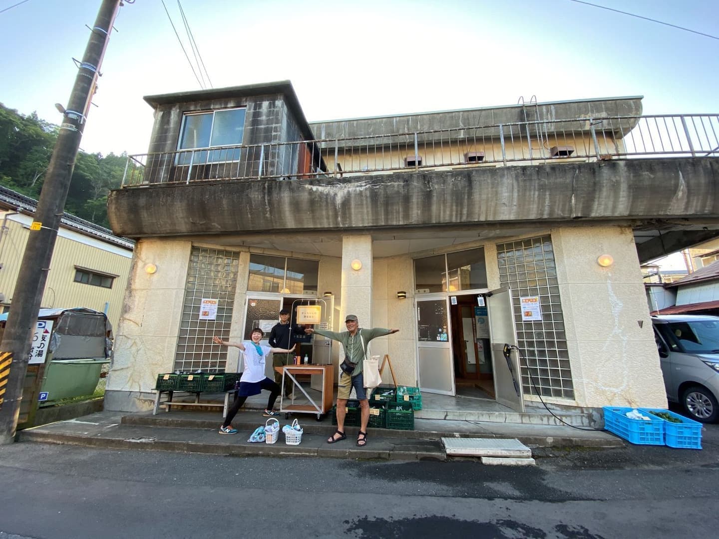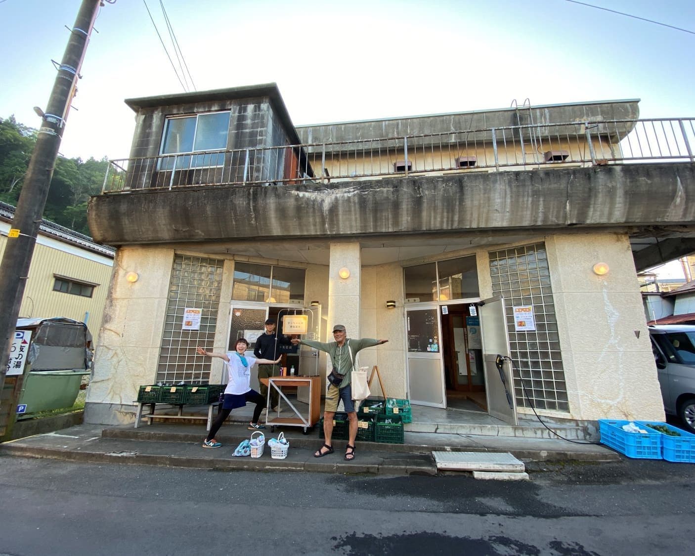 さっそくスタート初日に山の同窓会で大量に出たアルミ缶を引っ提げて仁岸湯へ。