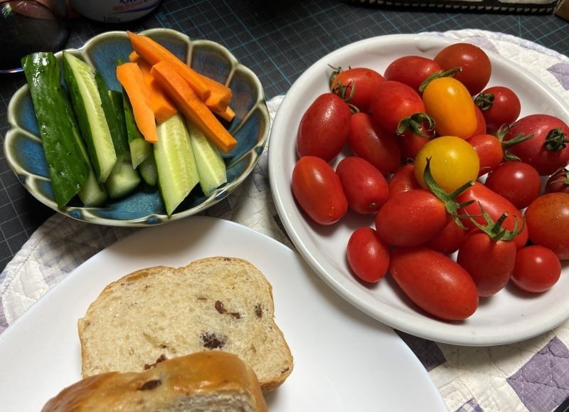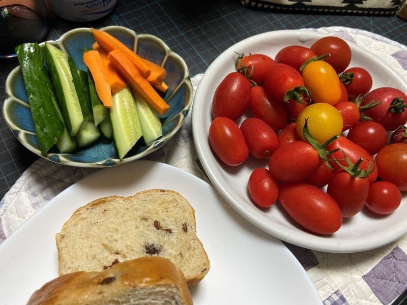 ちょうど友の湯さんの玄関前で月に1度「かっちゃんの野菜販売」が開かれており、さっそく白ナスやトマト、おくらを購入させていただきました。