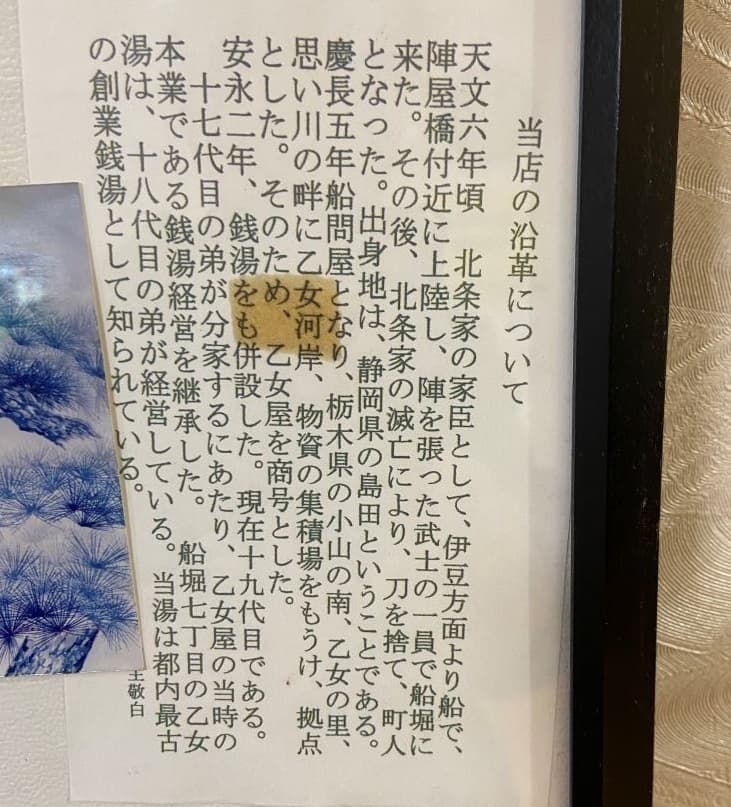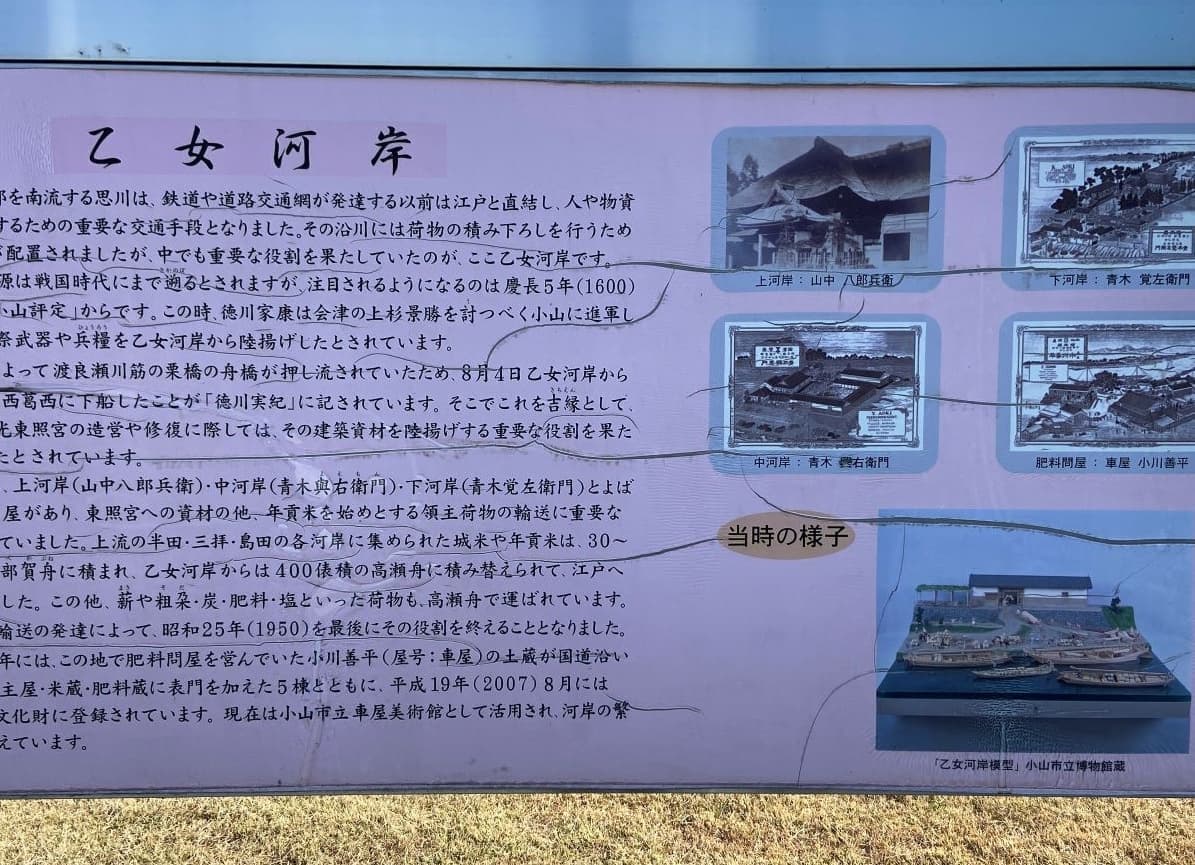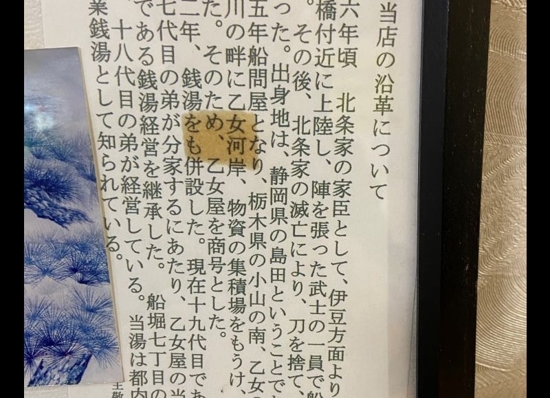 「あけぼの湯」の「当店の沿革について」には思い川(思川、利根川水系渡良瀬川支流)の乙女河岸が「乙女湯」との由来が書かれています。