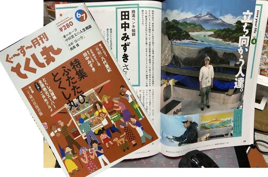 そんなとくし丸が発刊する雑誌に銭湯絵師・田中みずきさんが登場と知り、さっそく取り寄せてみました(6/7月号)。