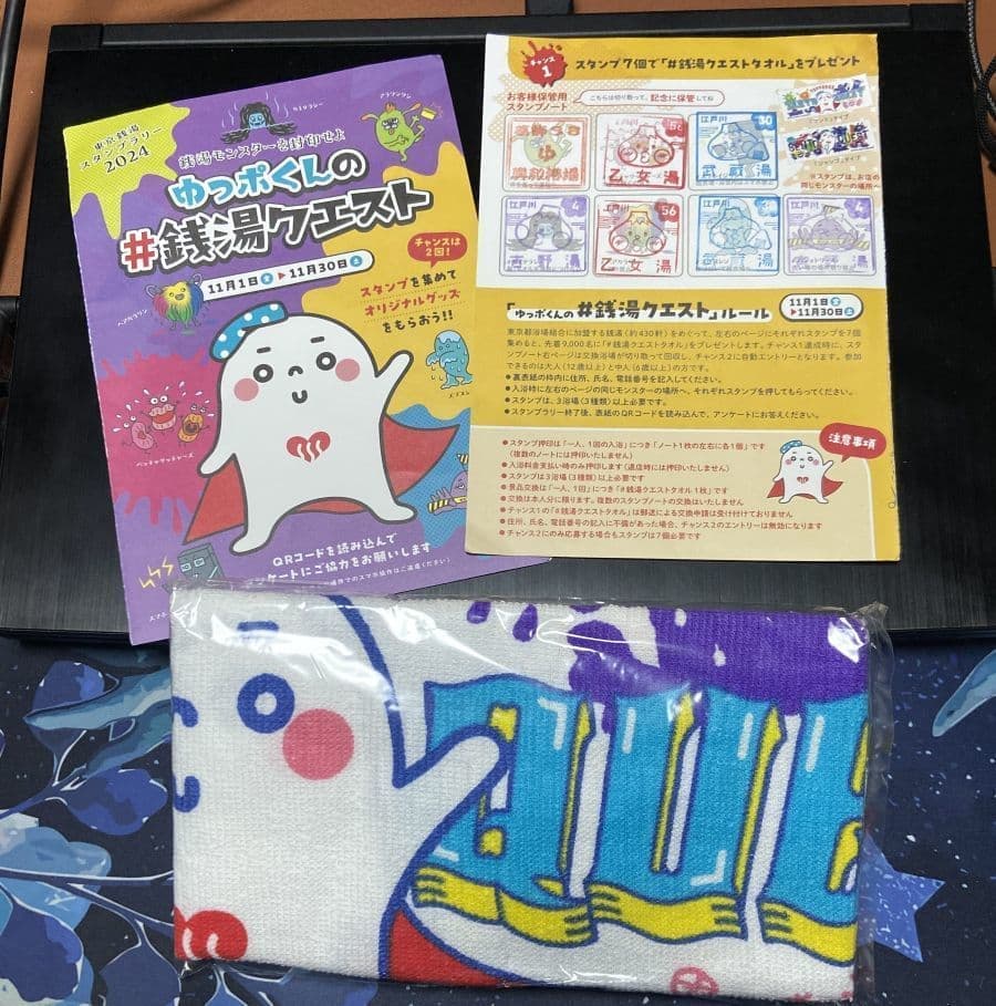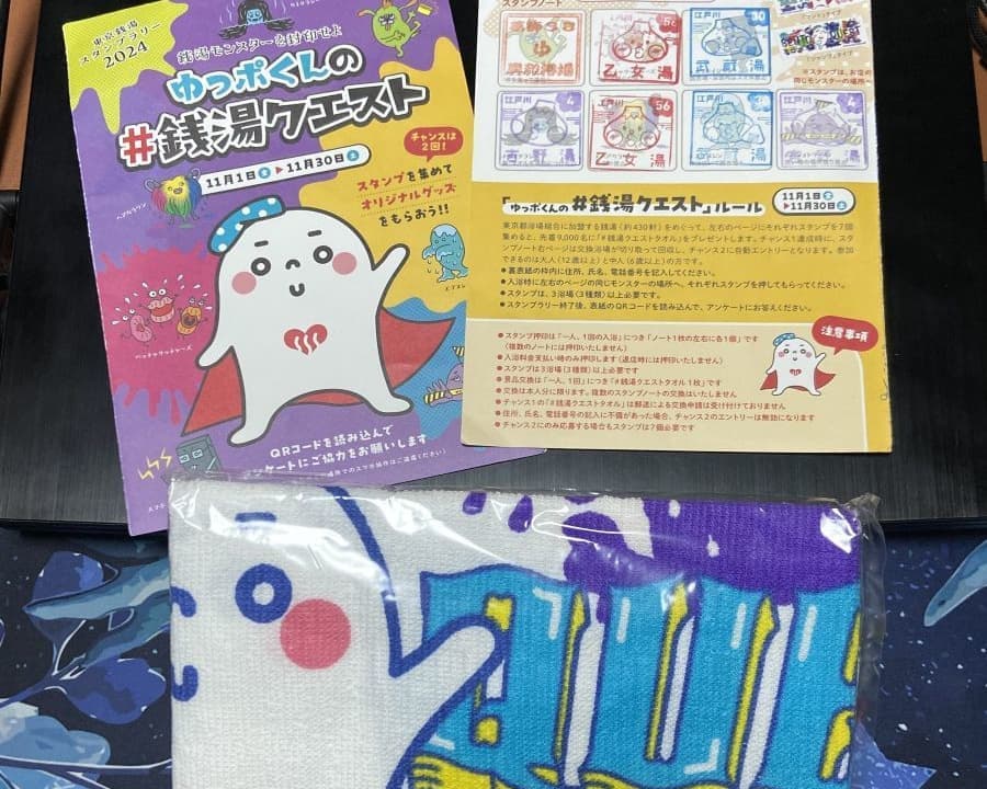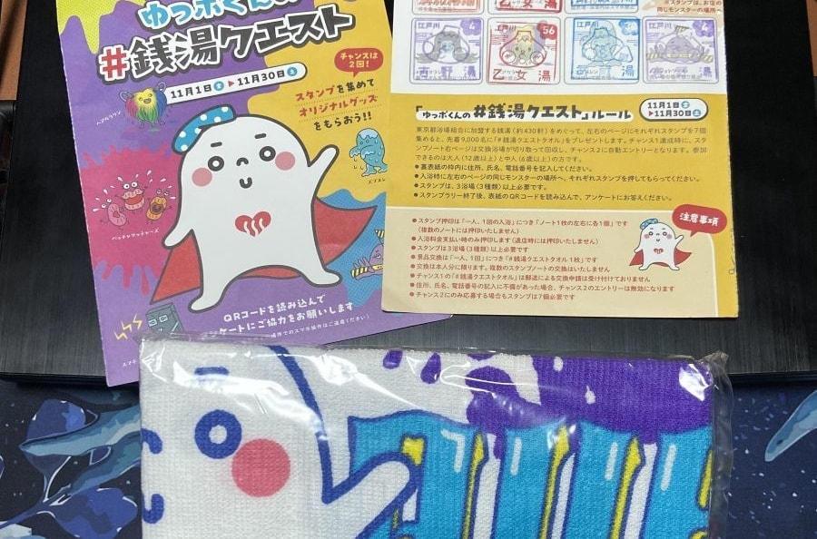 まずは5個のスタンプでオリジナルタオルを取得。今後、トートバックやバスタオルを年末まで狙います。