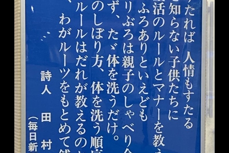 右は石川県の公衆浴場・浅の川温泉「湯楽」に掲げられている田村隆一さんの詩