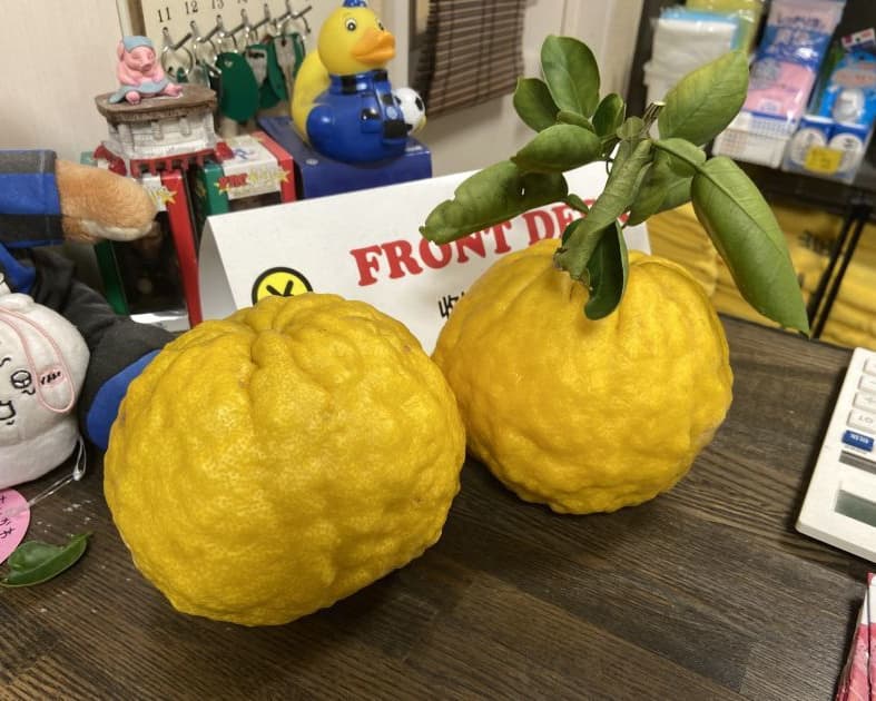 面白いことに、ここ仁岸湯の柚子湯の柚子は鬼柚子(獅子柚子ともいうそうです)というデカい柚子。